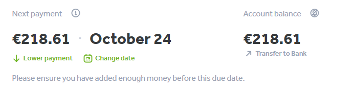 But before you make a withdrawal order, please scroll to the top of your dashboard and ensure that there will be enough money on your account for your next repayment, e.g.: