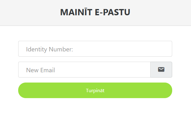 - Nākamajā lapā ievadi savu personas kodu un Tev pieejamo e-pasta adresi. Pārliecinies, ka e-pasta adrese ievadīta pareizi.