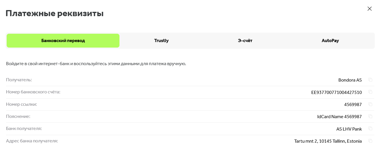 Как пополнить свой счет Bondora?